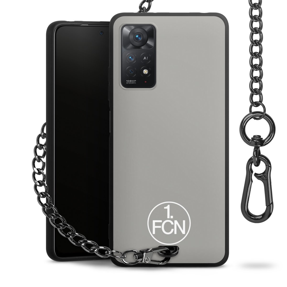 • Mattschwarze Handyhülle mit Metallkette