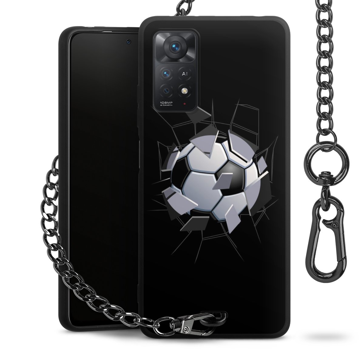 • Mattschwarze Handyhülle mit Metallkette