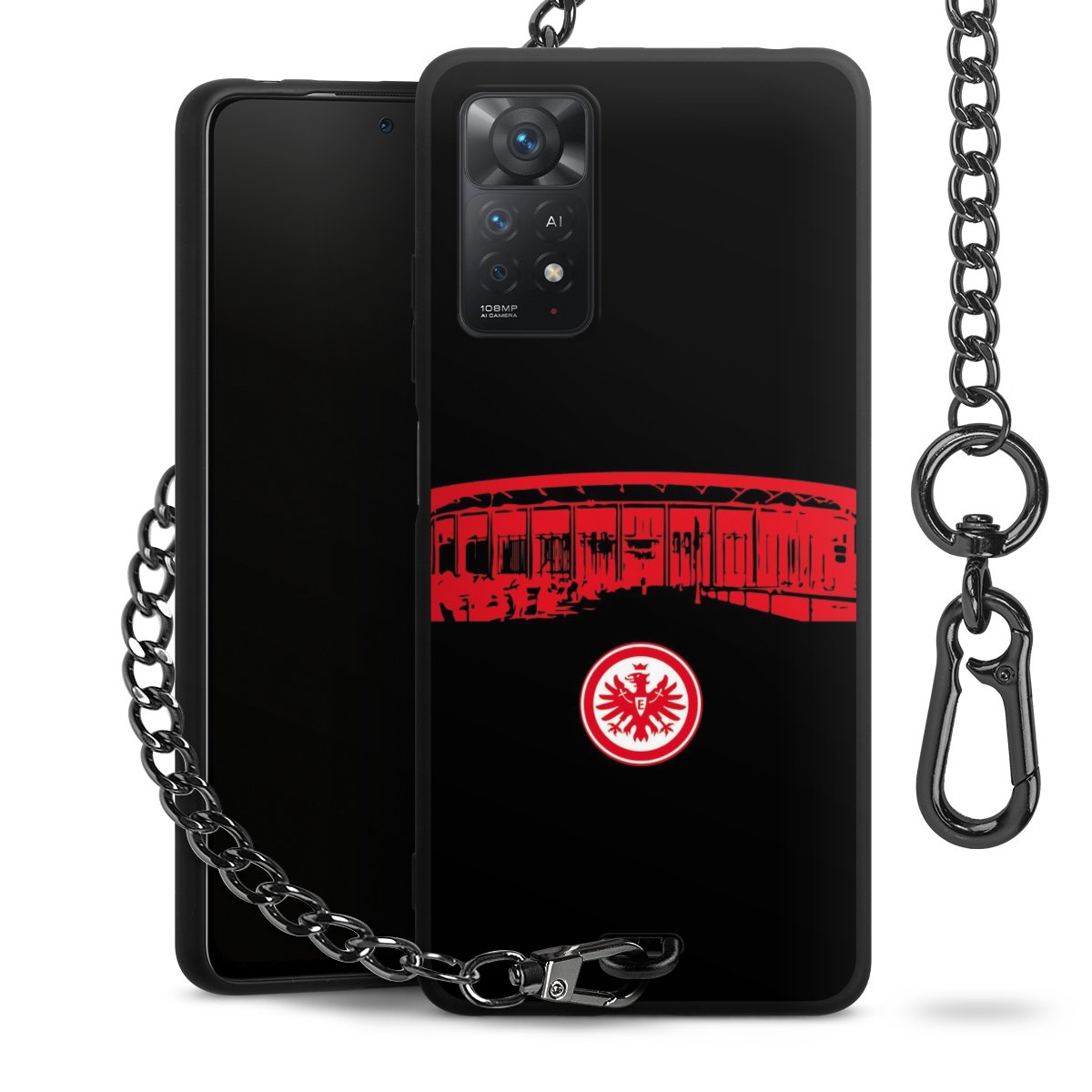• Mattschwarze Handyhülle mit Metallkette