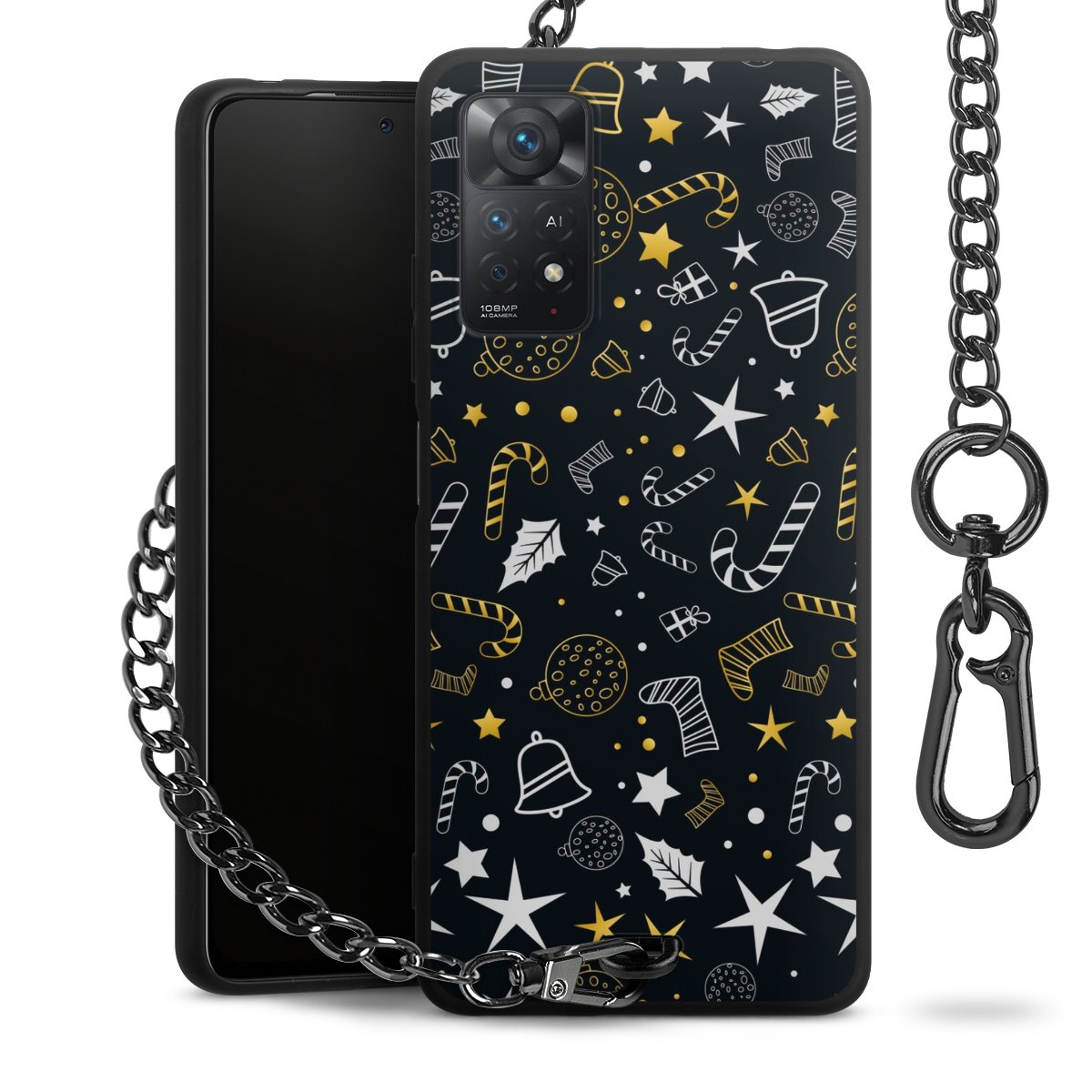 - Mattschwarze Handyhülle mit Metallkette