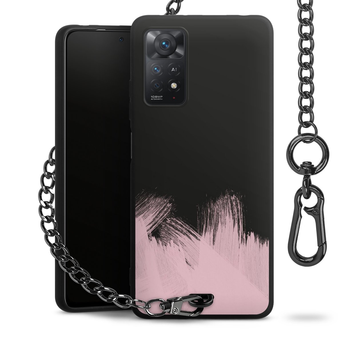 • Mattschwarze Handyhülle mit Metallkette