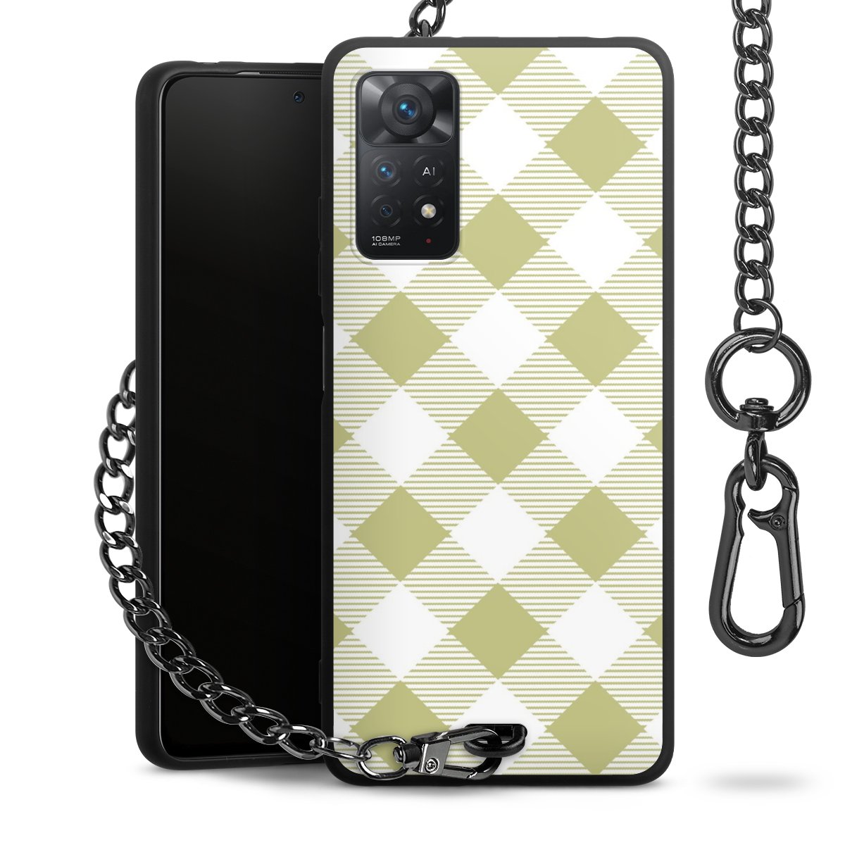 Die mattschwarze Silikon-Handyhülle besteht aus robustem TPU (thermoplastisches Polyurethan). Sie ist flexibel und schützt Dein Smartphone vor Stößen und Kratzern. Die Kette sowie der Karabinerhaken sind aus Metall in Gunmetal-Optik gefertigt. Für dieses Produkt kommen ausschließlich TÜV-geprüfte Materialien zum Einsatz.