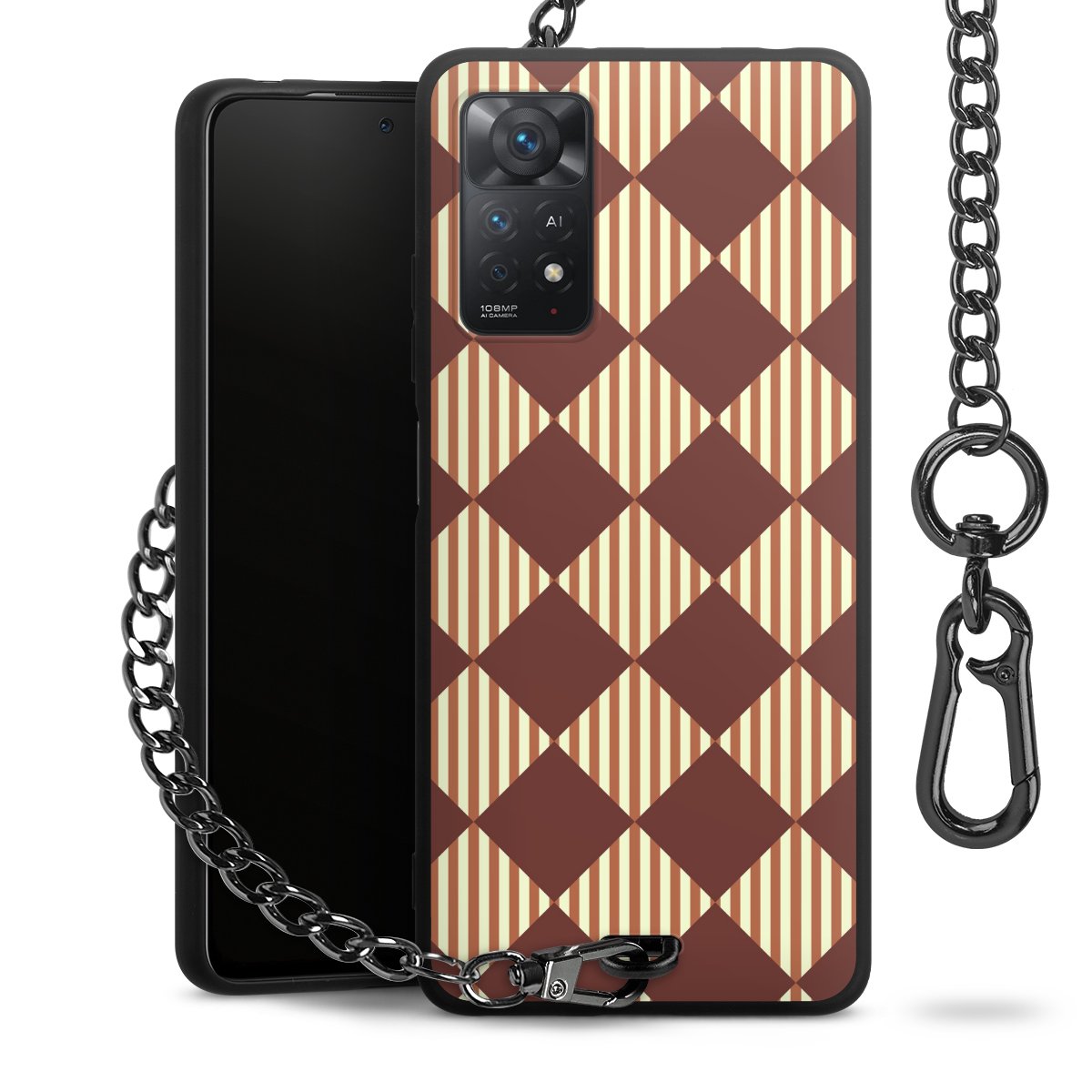 - Mattschwarze Handyhülle mit Metallkette