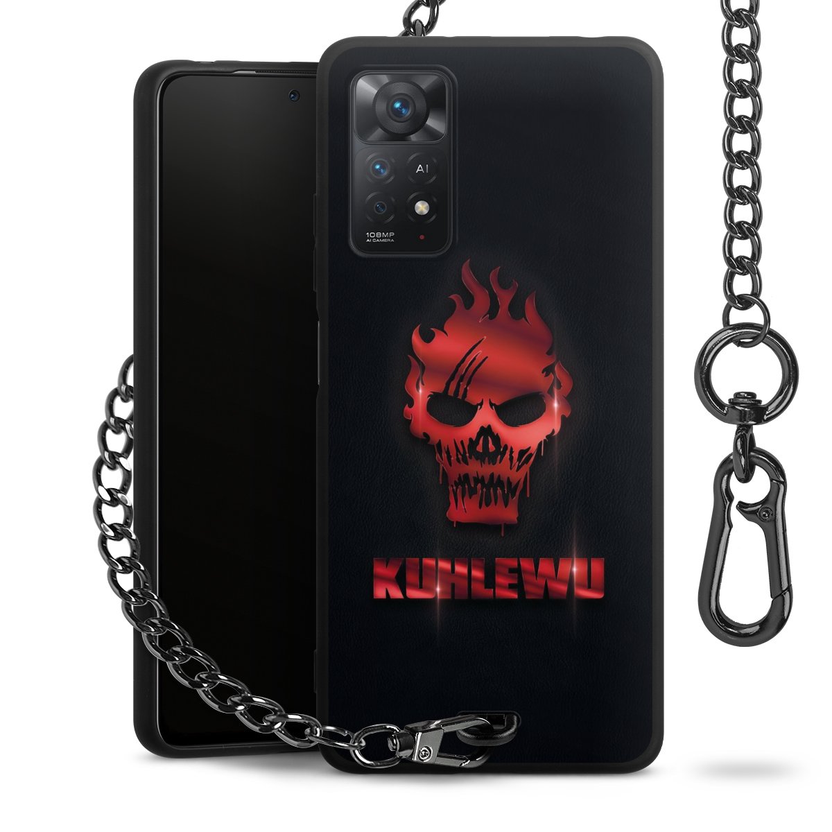 • Mattschwarze Handyhülle mit Metallkette