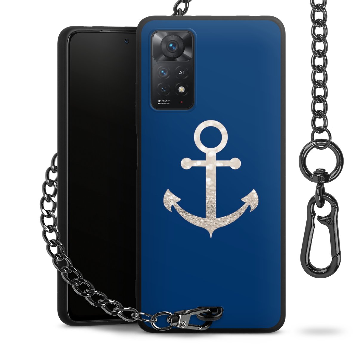 - Mattschwarze Handyhülle mit Metallkette