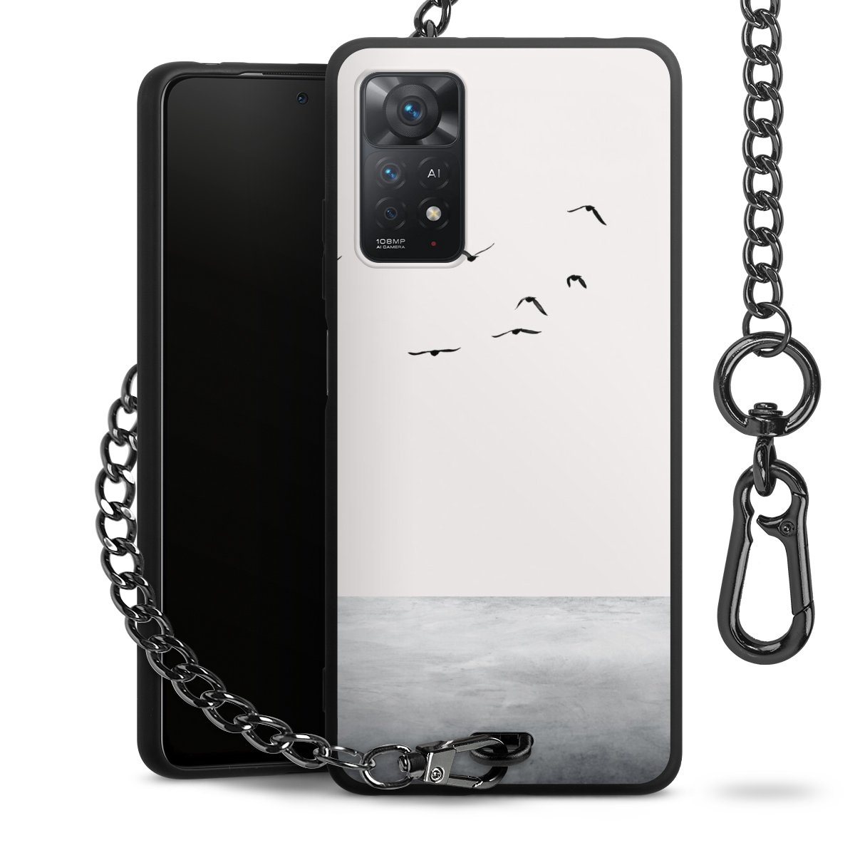• Mattschwarze Handyhülle mit Metallkette