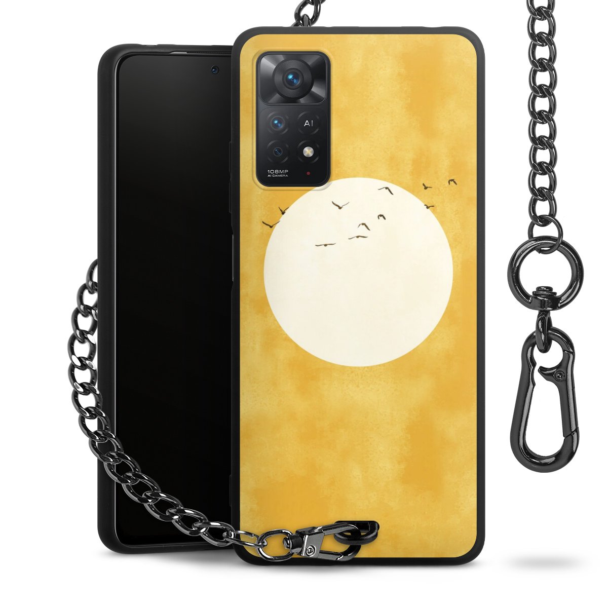 • Mattschwarze Handyhülle mit Metallkette