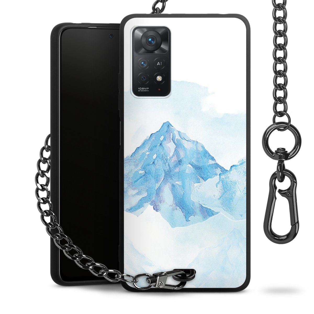 - Mattschwarze Handyhülle mit Metallkette