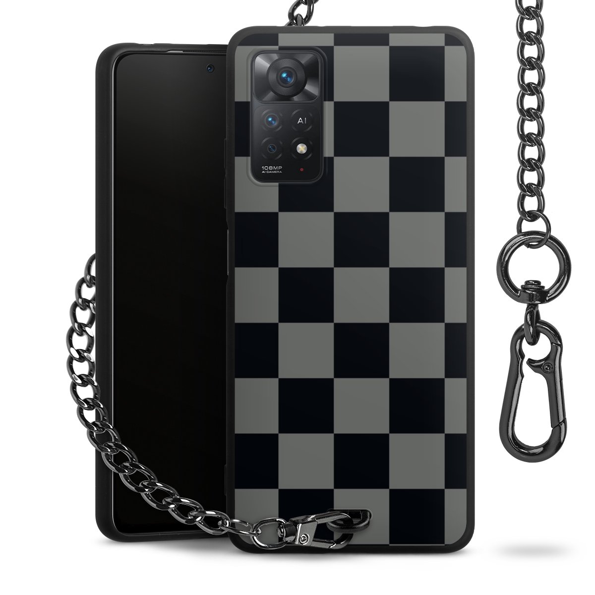 - Mattschwarze Handyhülle mit Metallkette