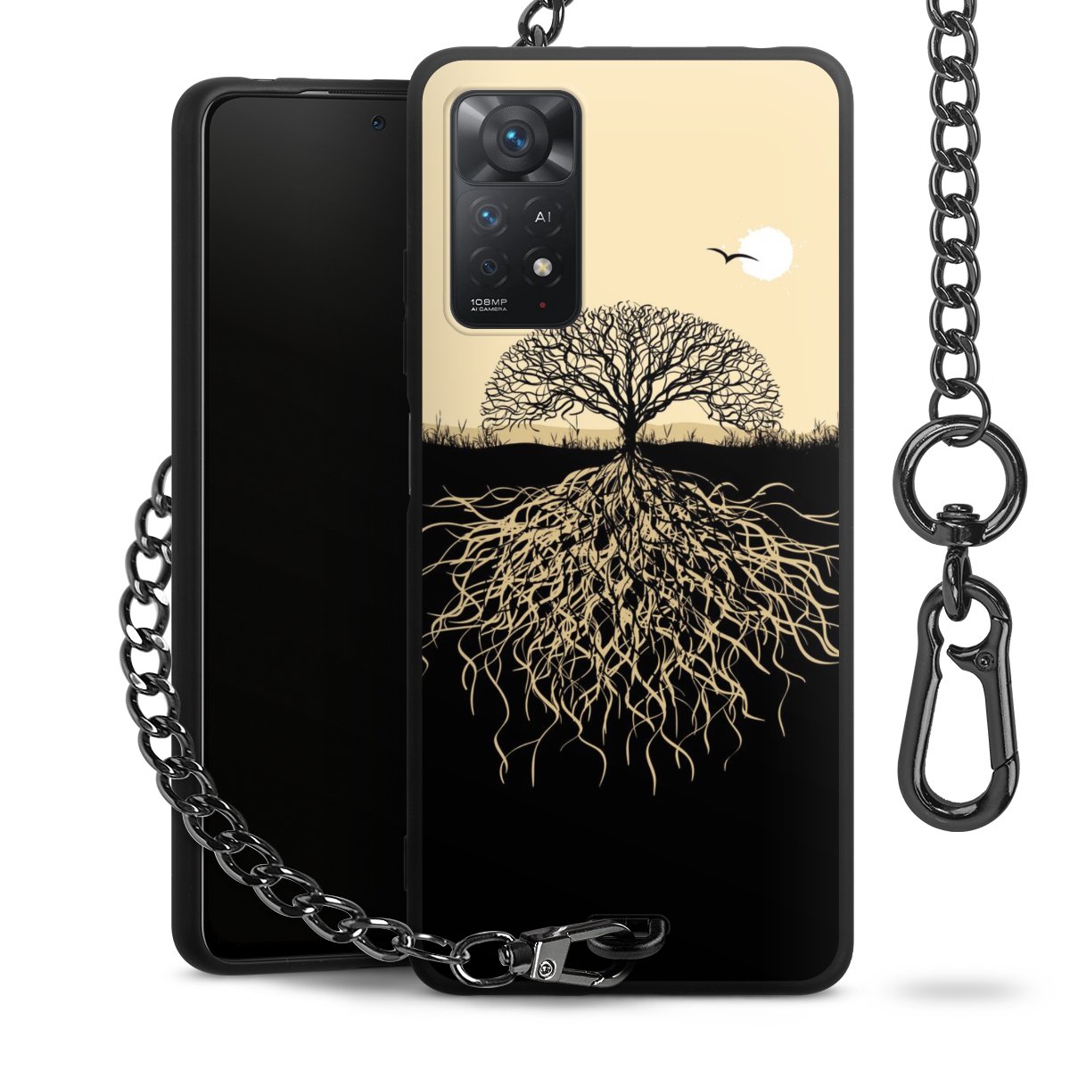 Die mattschwarze Silikon-Handyhülle besteht aus robustem TPU (thermoplastisches Polyurethan). Sie ist flexibel und schützt Dein Smartphone vor Stößen und Kratzern. Die Kette sowie der Karabinerhaken sind aus Metall in Gunmetal-Optik gefertigt. Für dieses Produkt kommen ausschließlich TÜV-geprüfte Materialien zum Einsatz.