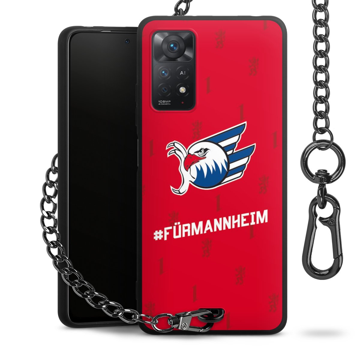 • Mattschwarze Handyhülle mit Metallkette