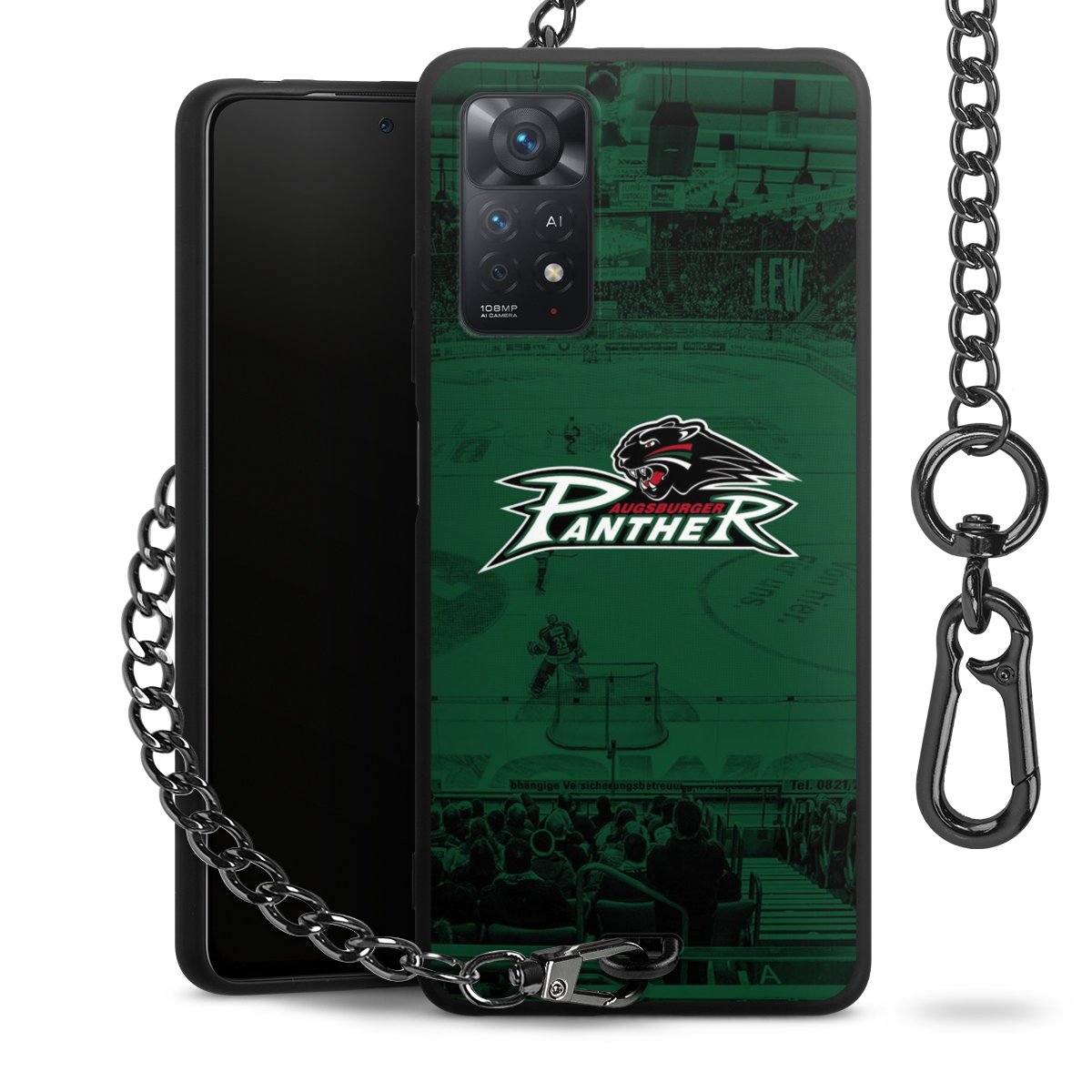 Die mattschwarze Silikon-Handyhülle besteht aus robustem TPU (thermoplastisches Polyurethan). Sie ist flexibel und schützt Dein Smartphone vor Stößen und Kratzern. Die Kette sowie der Karabinerhaken sind aus Metall in Gunmetal-Optik gefertigt. Für dieses Produkt kommen ausschließlich TÜV-geprüfte Materialien zum Einsatz.