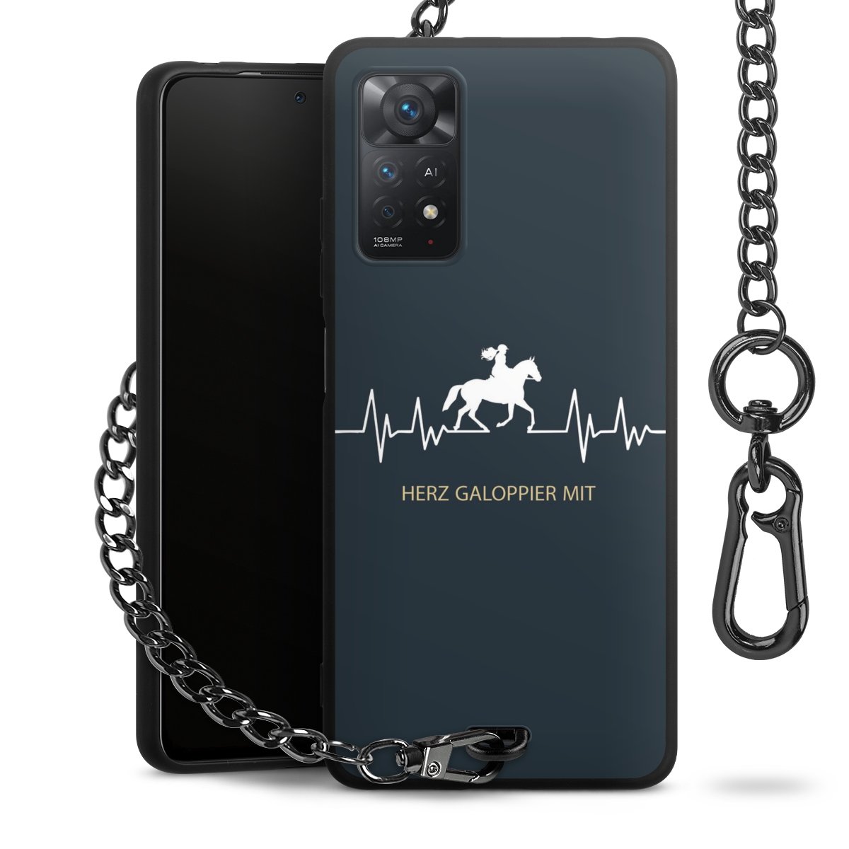 - Mattschwarze Handyhülle mit Metallkette