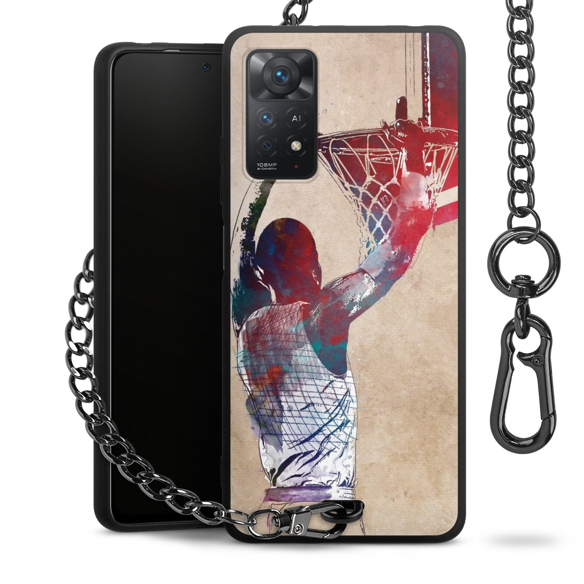 • Mattschwarze Handyhülle mit Metallkette