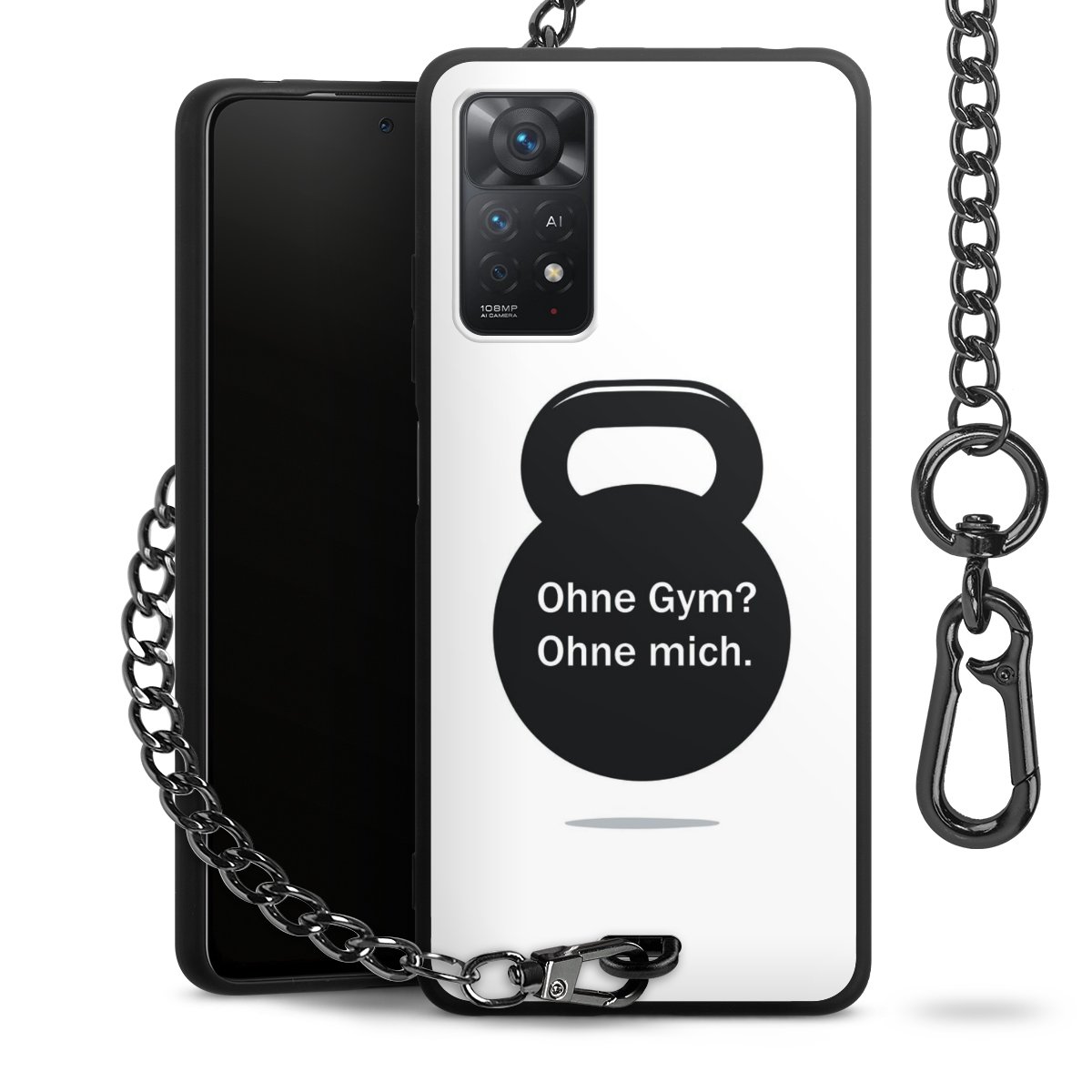 Die mattschwarze Silikon-Handyhülle besteht aus robustem TPU (thermoplastisches Polyurethan). Sie ist flexibel und schützt Dein Smartphone vor Stößen und Kratzern. Die Kette sowie der Karabinerhaken sind aus Metall in Gunmetal-Optik gefertigt. Für dieses Produkt kommen ausschließlich TÜV-geprüfte Materialien zum Einsatz.