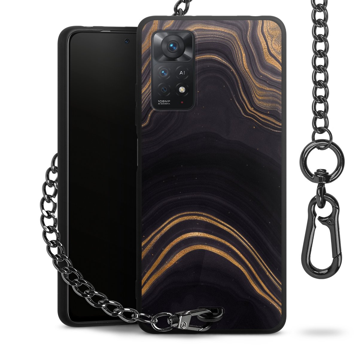 • Mattschwarze Handyhülle mit Metallkette