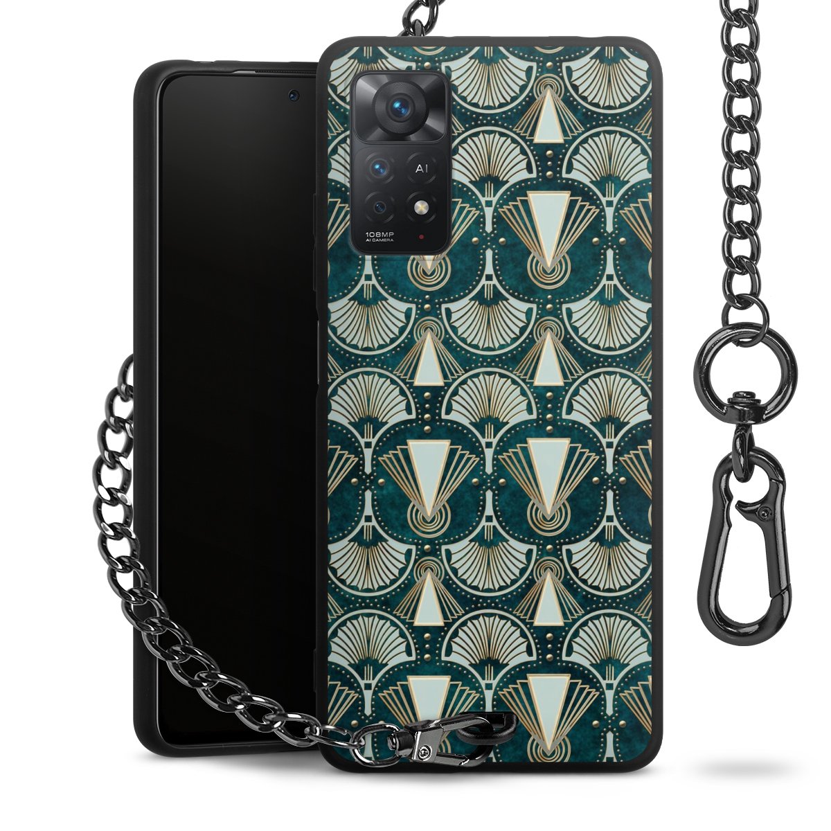 • Mattschwarze Handyhülle mit Metallkette