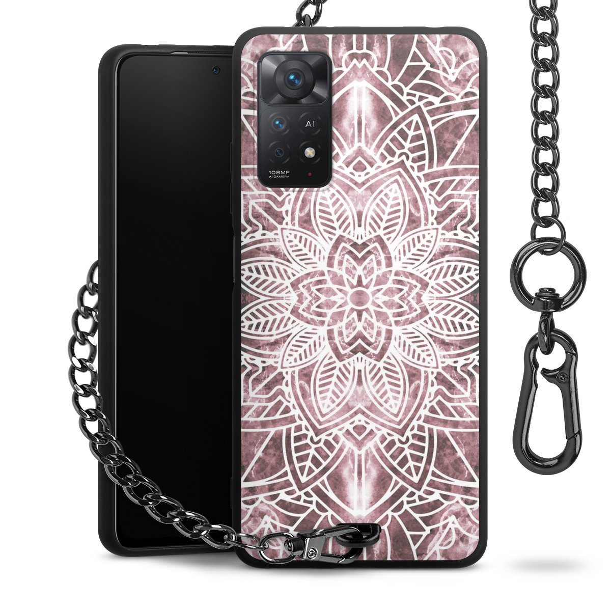 • Mattschwarze Handyhülle mit Metallkette