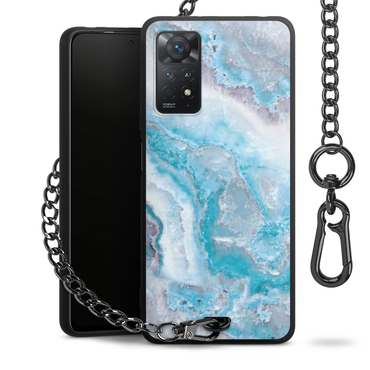 • Mattschwarze Handyhülle mit Metallkette