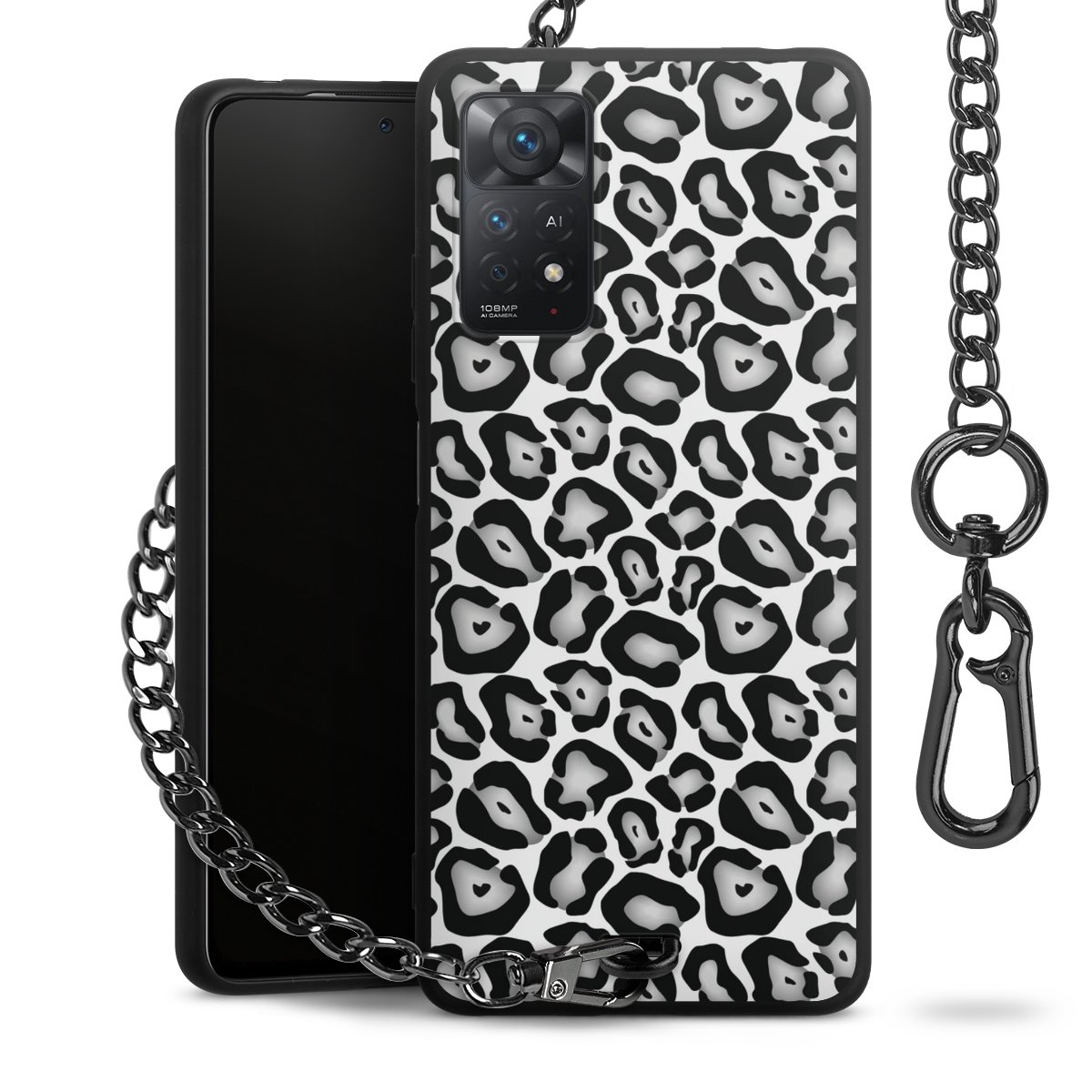 - Mattschwarze Handyhülle mit Metallkette