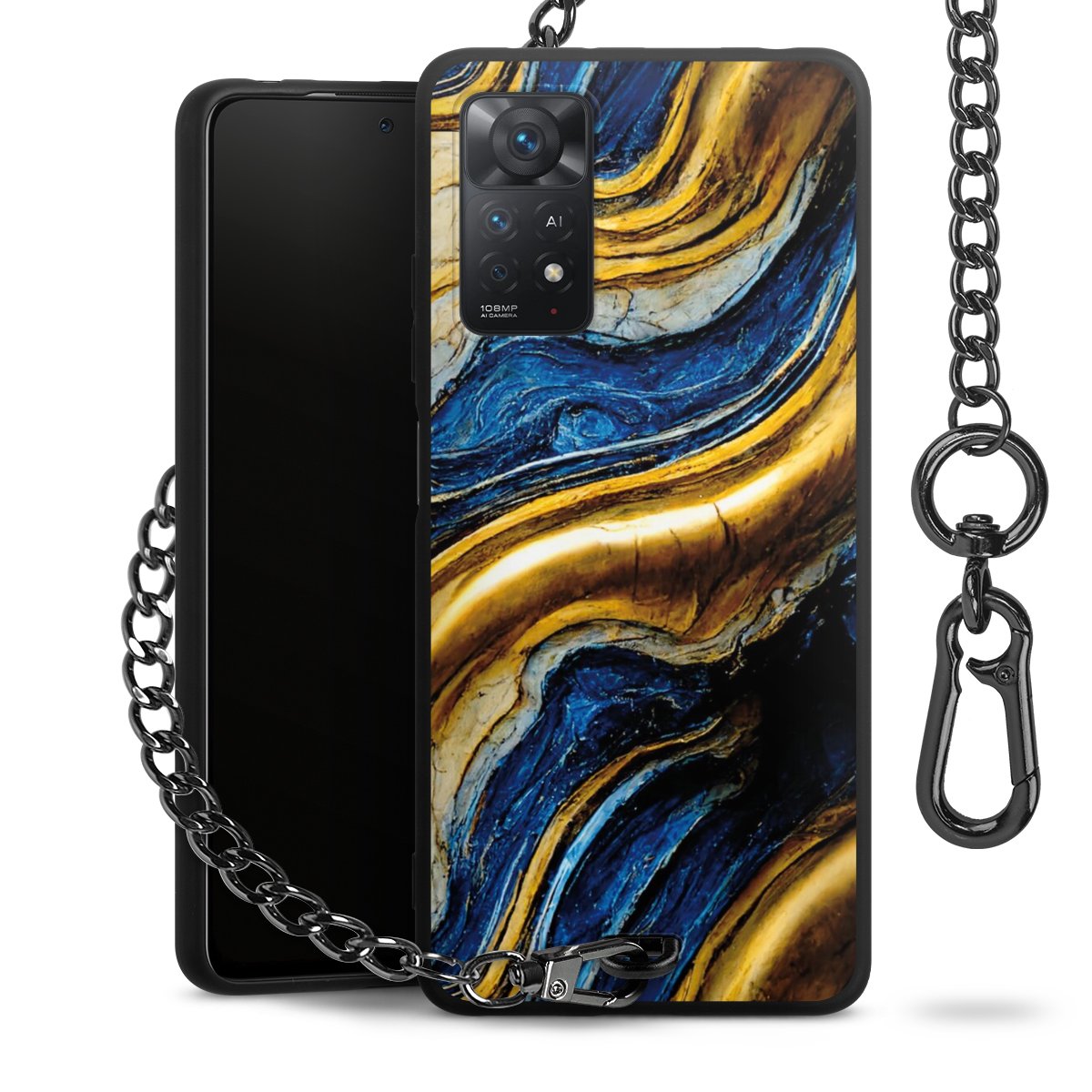 • Mattschwarze Handyhülle mit Metallkette