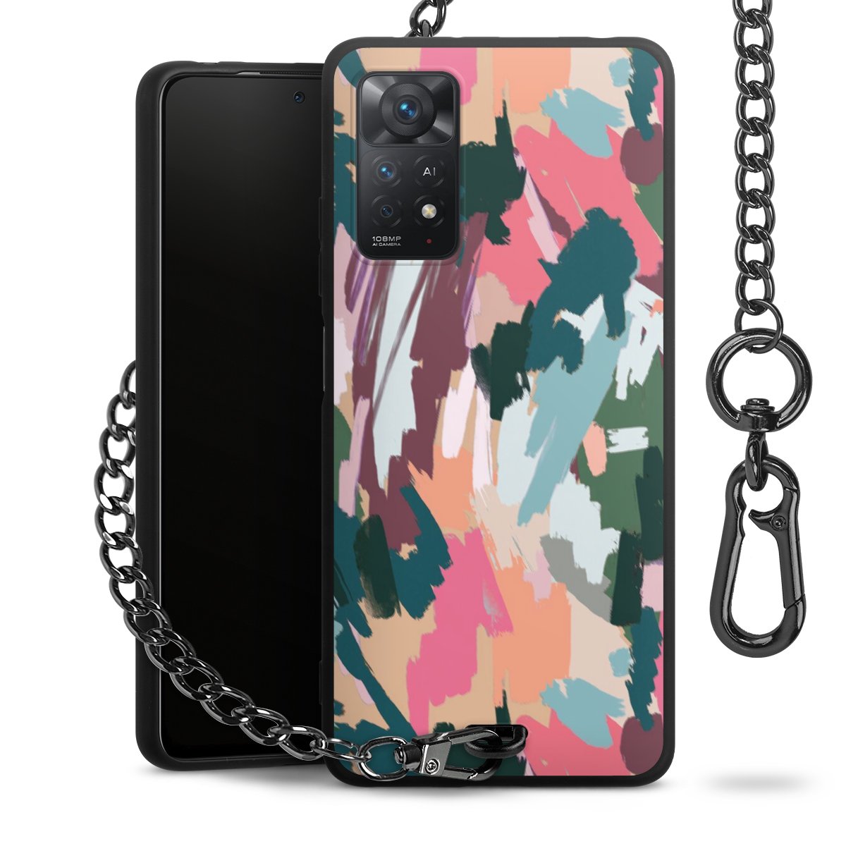 • Mattschwarze Handyhülle mit Metallkette