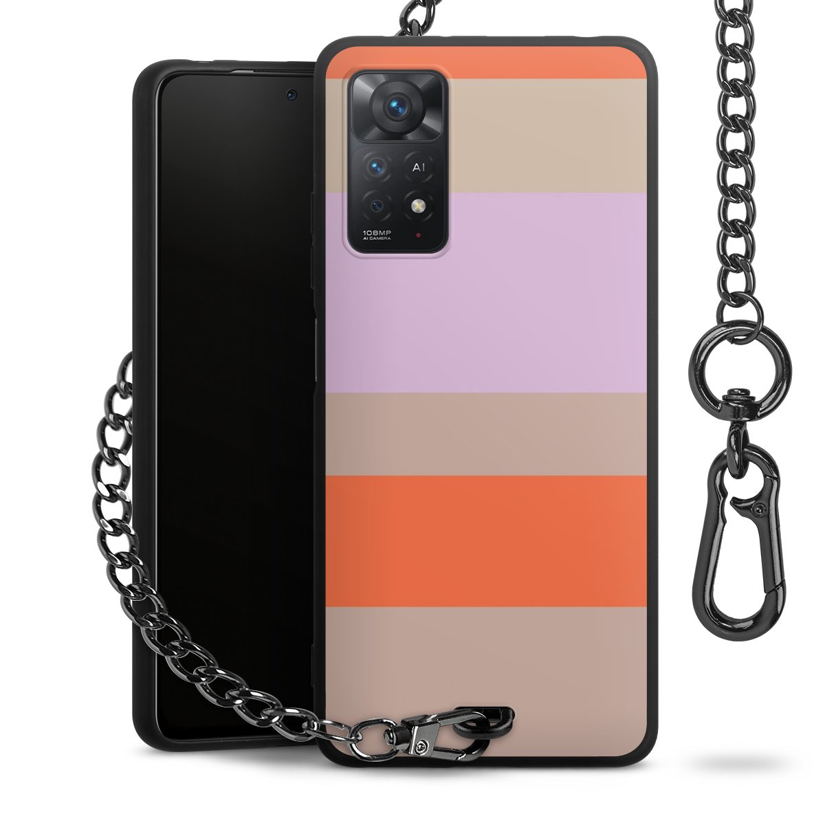 • Mattschwarze Handyhülle mit Metallkette
