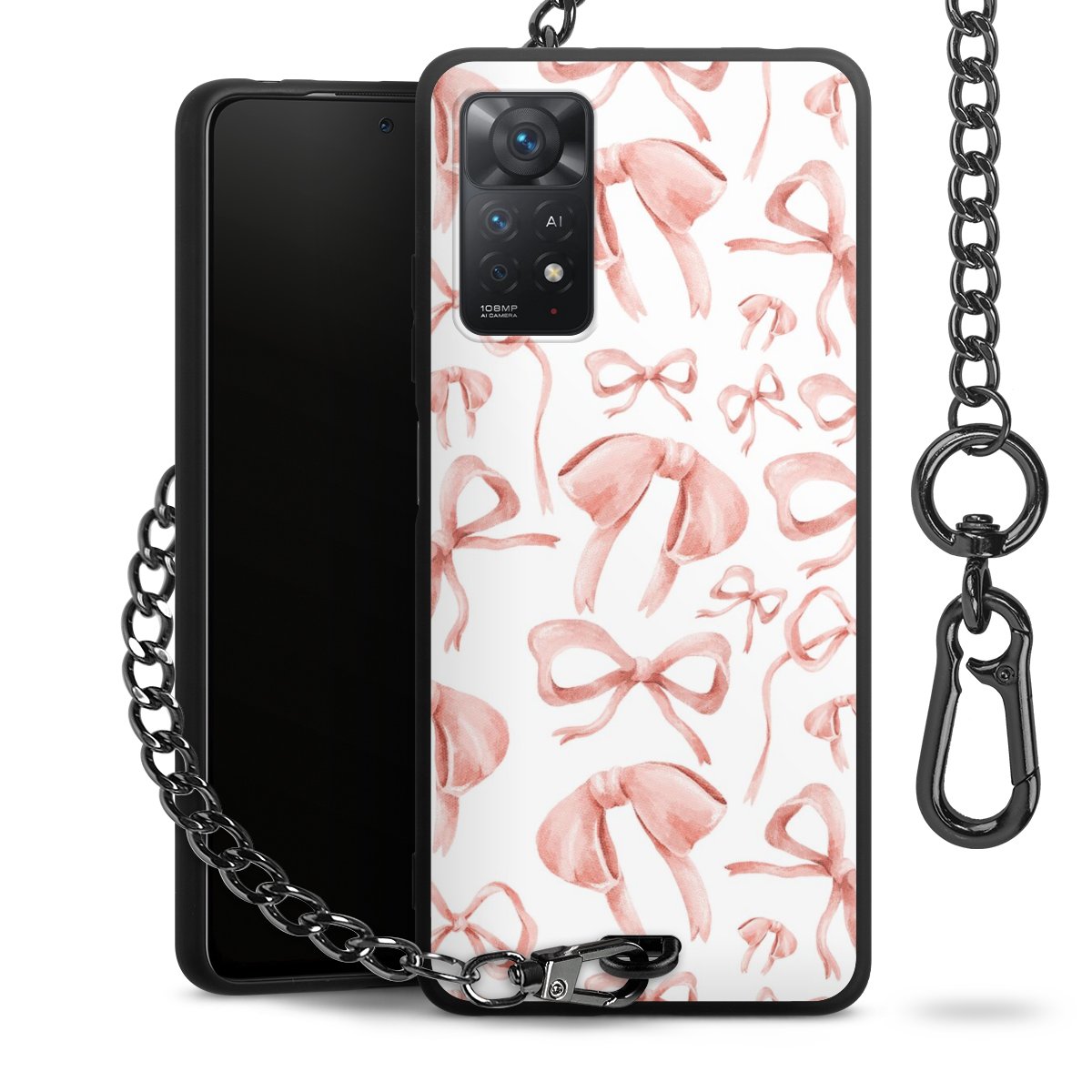 • Mattschwarze Handyhülle mit Metallkette