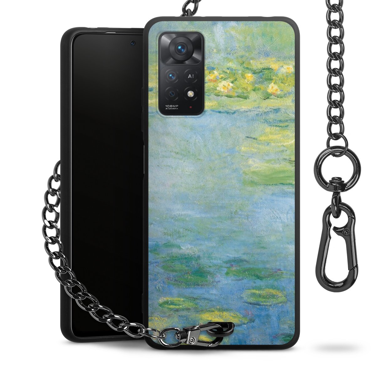 • Mattschwarze Handyhülle mit Metallkette