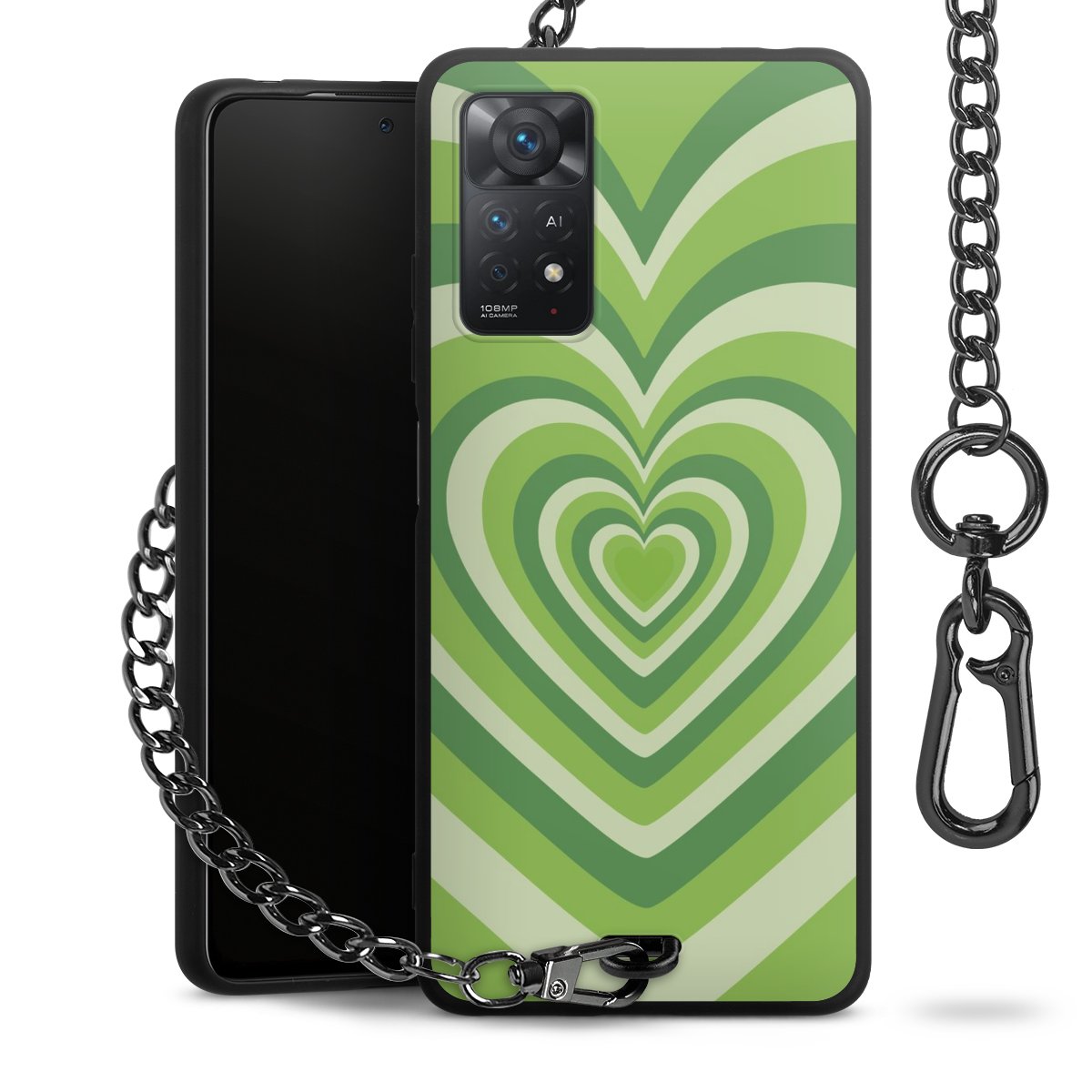 - Mattschwarze Handyhülle mit Metallkette