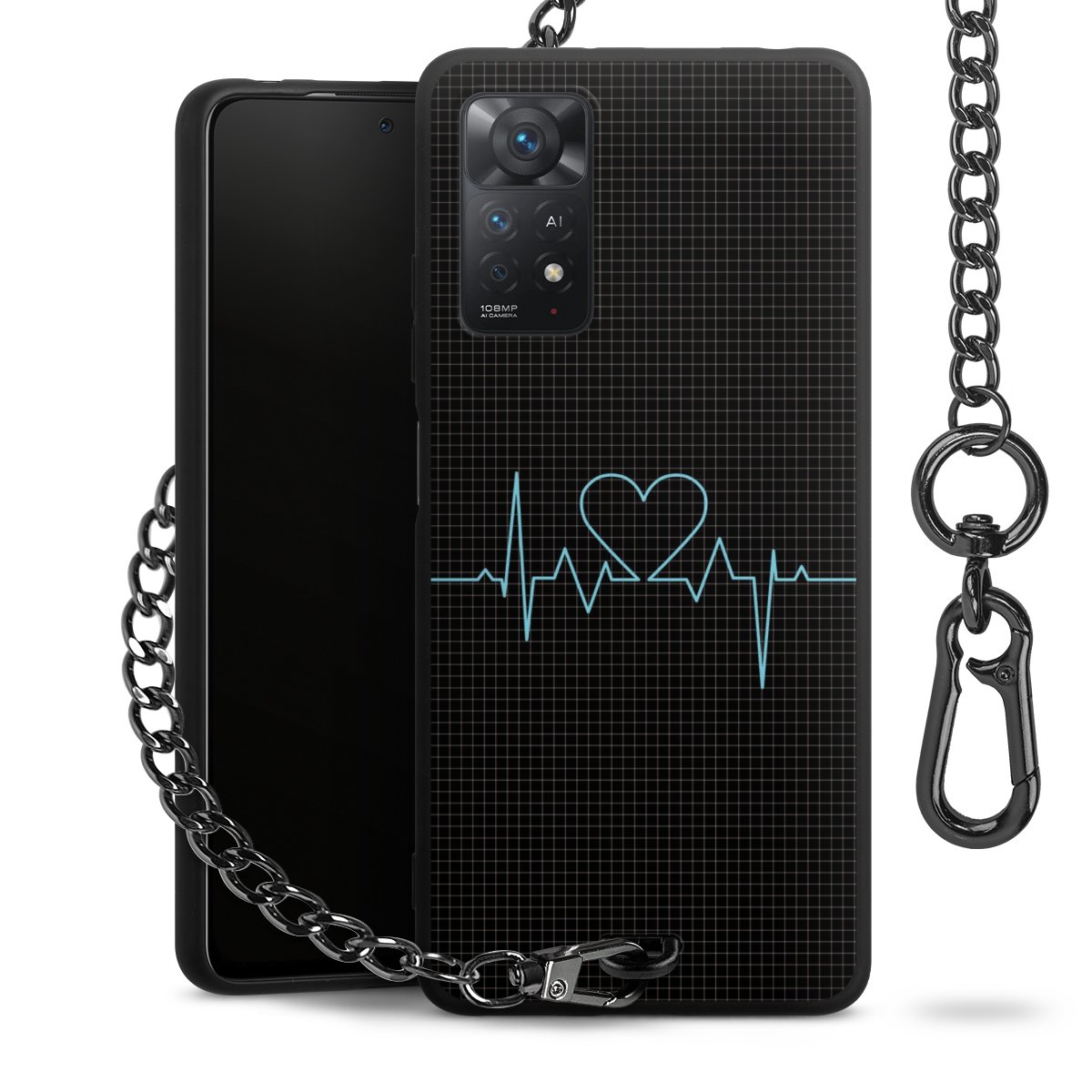 - Mattschwarze Handyhülle mit Metallkette