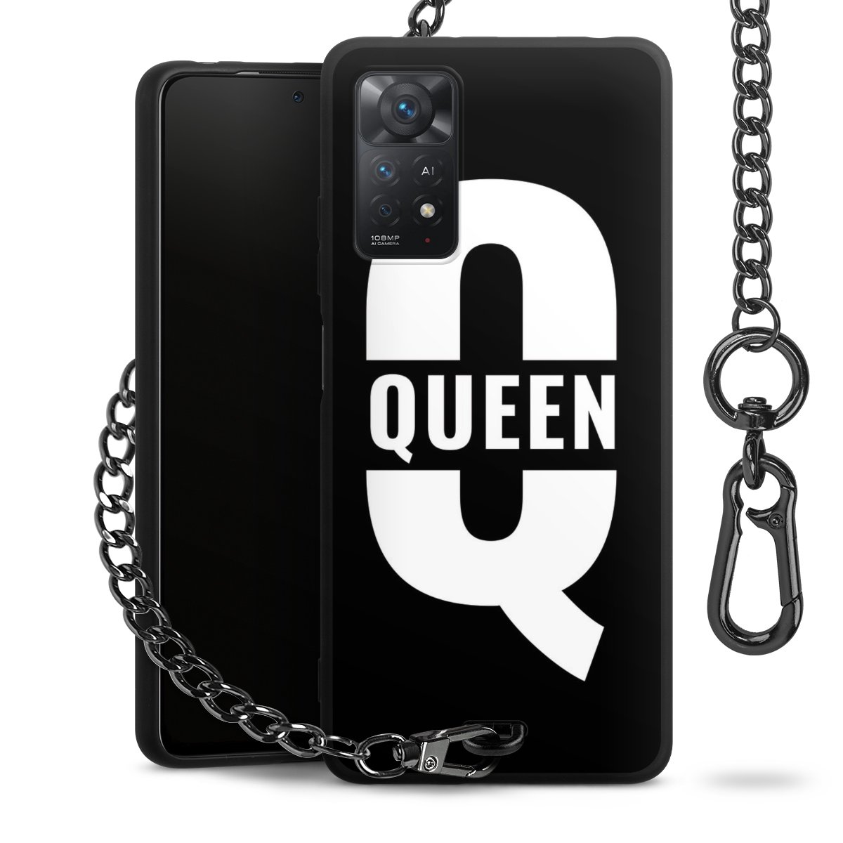 • Mattschwarze Handyhülle mit Metallkette
