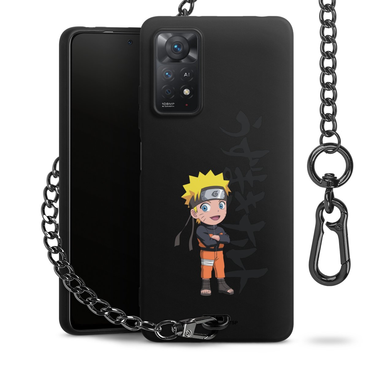 • Mattschwarze Handyhülle mit Metallkette