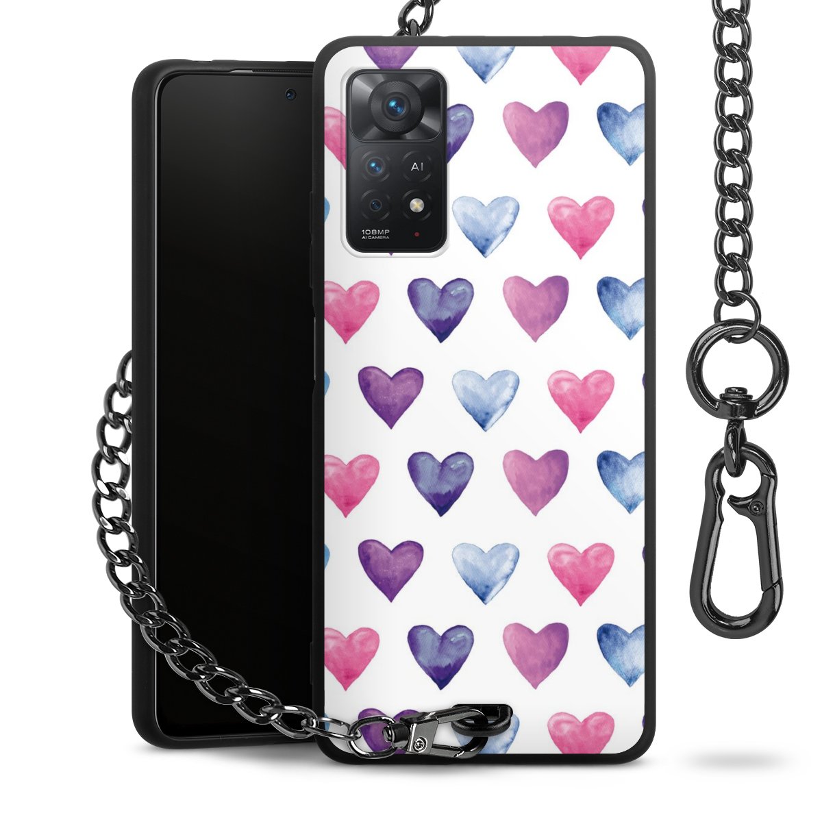 - Mattschwarze Handyhülle mit Metallkette