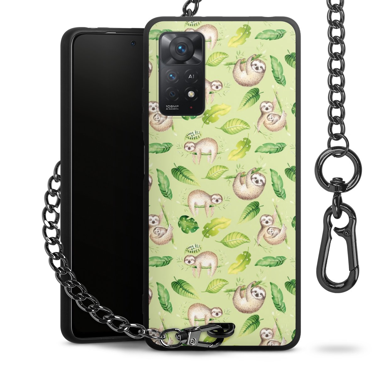 • Mattschwarze Handyhülle mit Metallkette