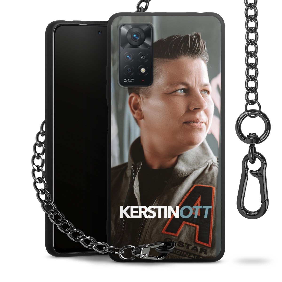 • Mattschwarze Handyhülle mit Metallkette