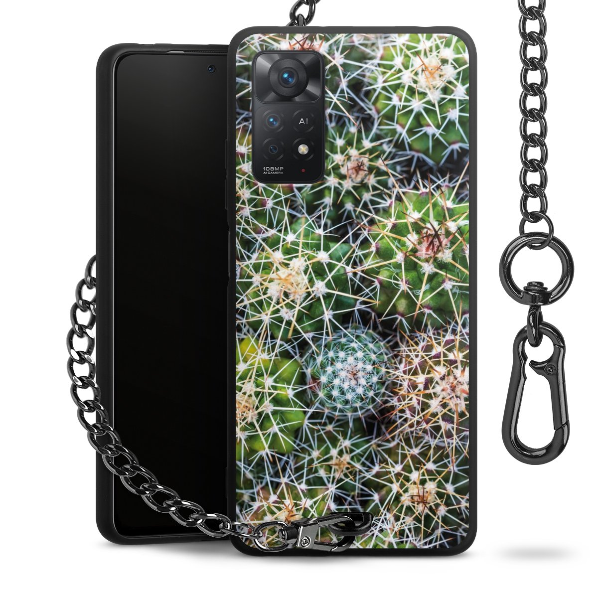 - Mattschwarze Handyhülle mit Metallkette