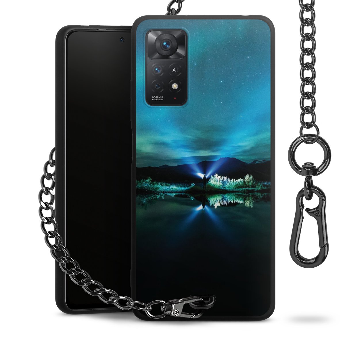 - Mattschwarze Handyhülle mit Metallkette