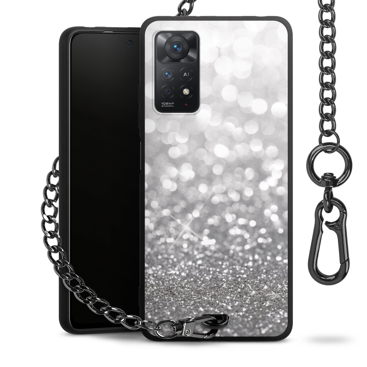 • Mattschwarze Handyhülle mit Metallkette