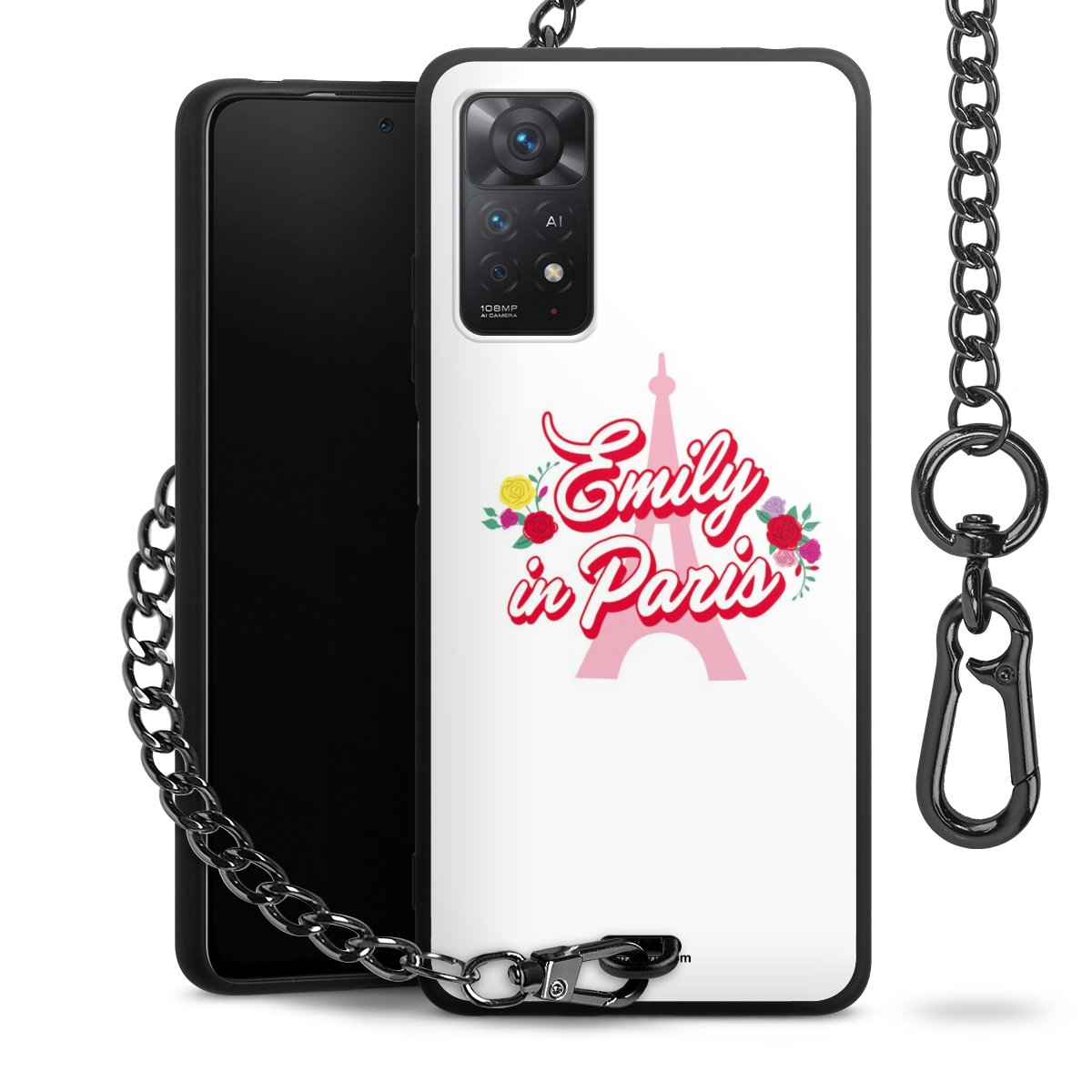 - Mattschwarze Handyhülle mit Metallkette