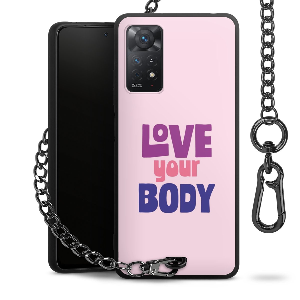 • Mattschwarze Handyhülle mit Metallkette