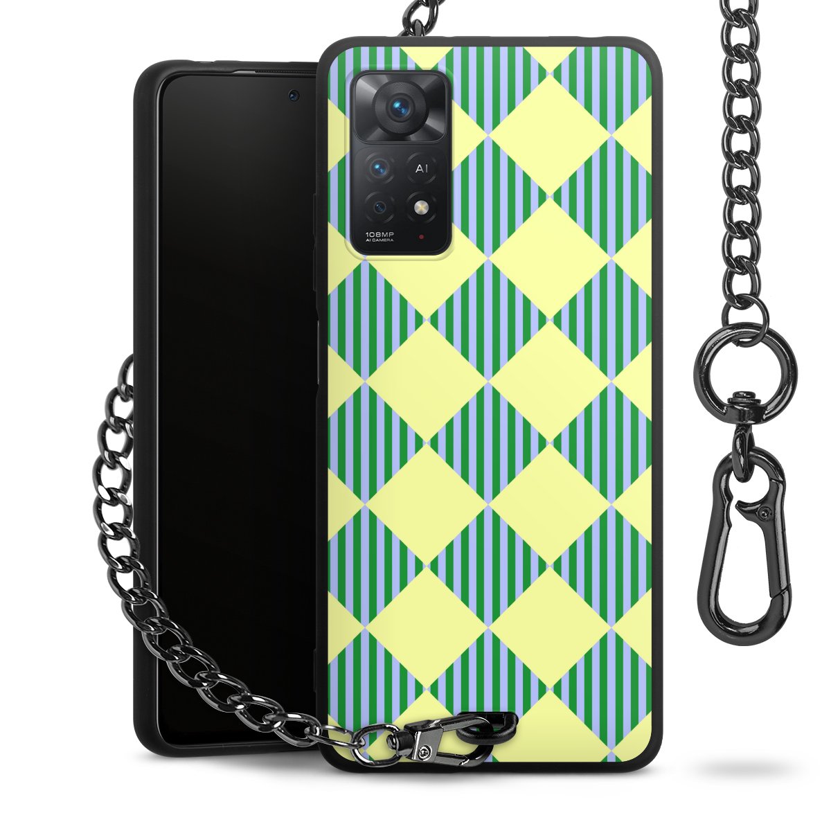 - Mattschwarze Handyhülle mit Metallkette