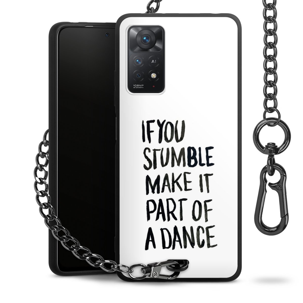 - Mattschwarze Handyhülle mit Metallkette
