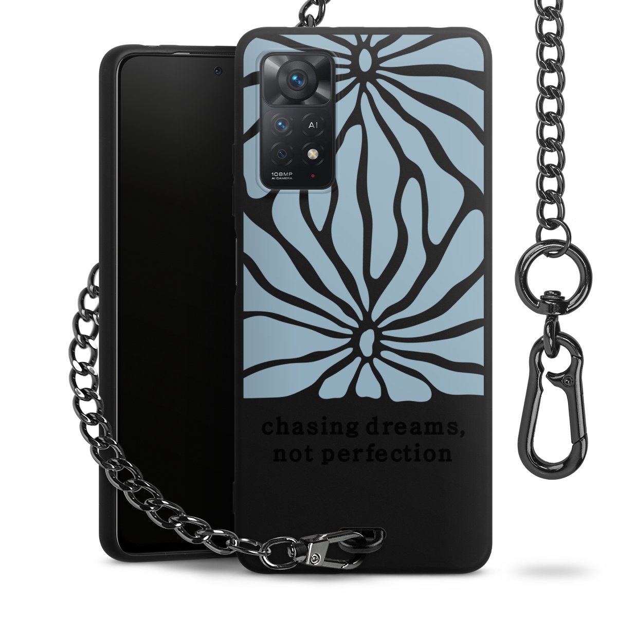 - Mattschwarze Handyhülle mit Metallkette