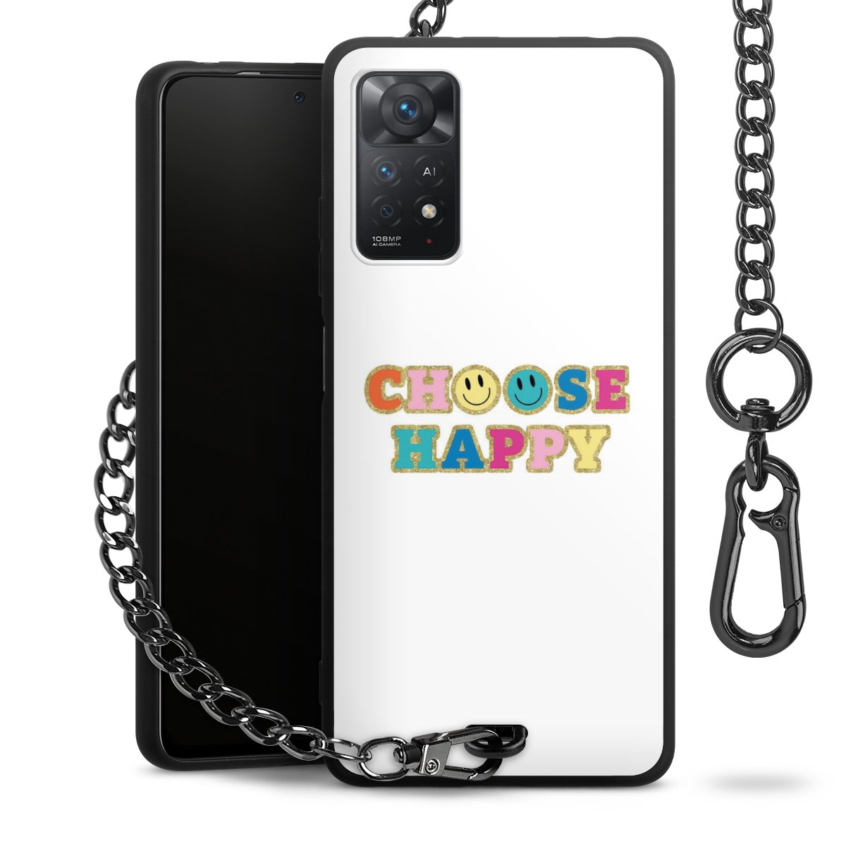Die mattschwarze Silikon-Handyhülle besteht aus robustem TPU (thermoplastisches Polyurethan). Sie ist flexibel und schützt Dein Smartphone vor Stößen und Kratzern. Die Kette sowie der Karabinerhaken sind aus Metall in Gunmetal-Optik gefertigt. Für dieses Produkt kommen ausschließlich TÜV-geprüfte Materialien zum Einsatz.