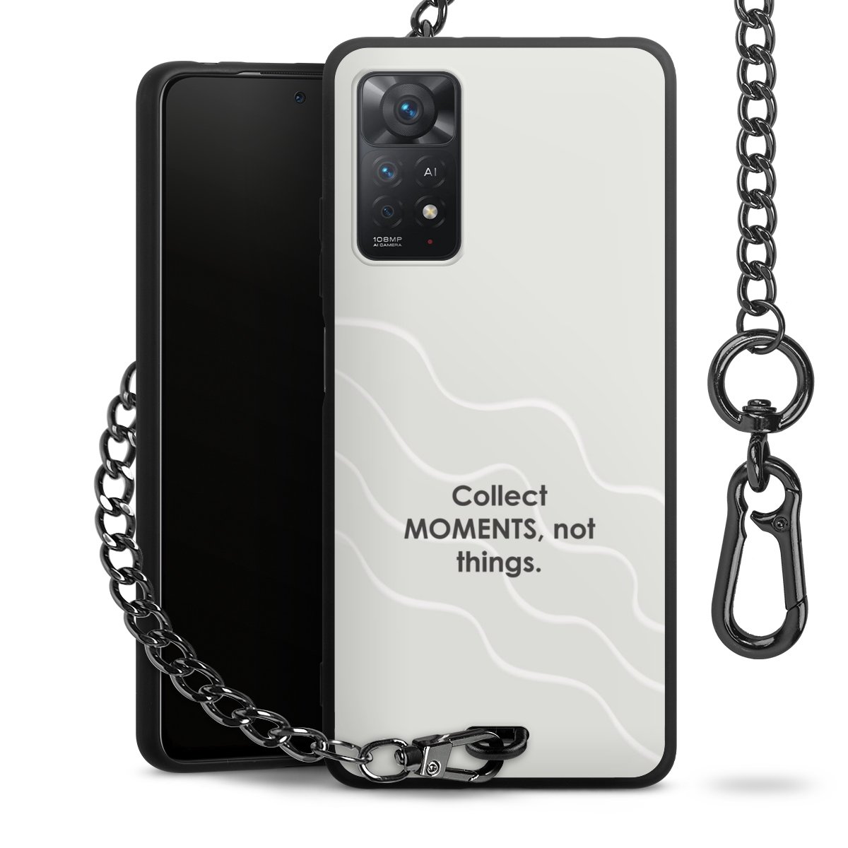 - Mattschwarze Handyhülle mit Metallkette