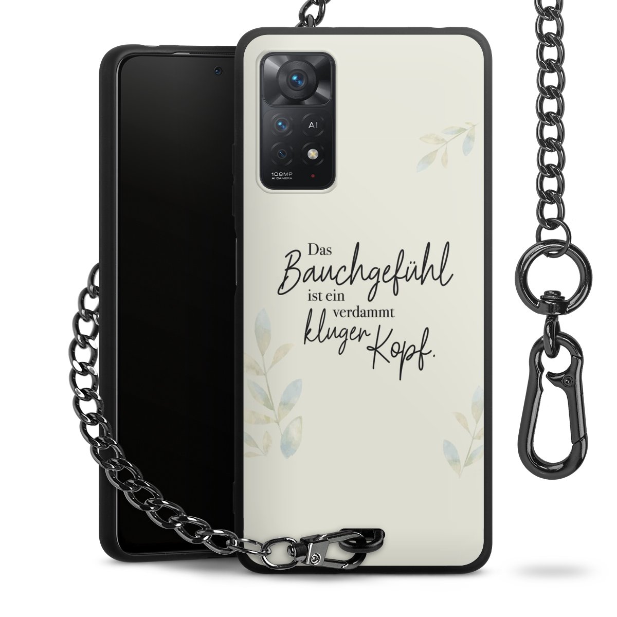 Die mattschwarze Silikon-Handyhülle besteht aus robustem TPU (thermoplastisches Polyurethan). Sie ist flexibel und schützt Dein Smartphone vor Stößen und Kratzern. Die Kette sowie der Karabinerhaken sind aus Metall in Gunmetal-Optik gefertigt. Für dieses Produkt kommen ausschließlich TÜV-geprüfte Materialien zum Einsatz.