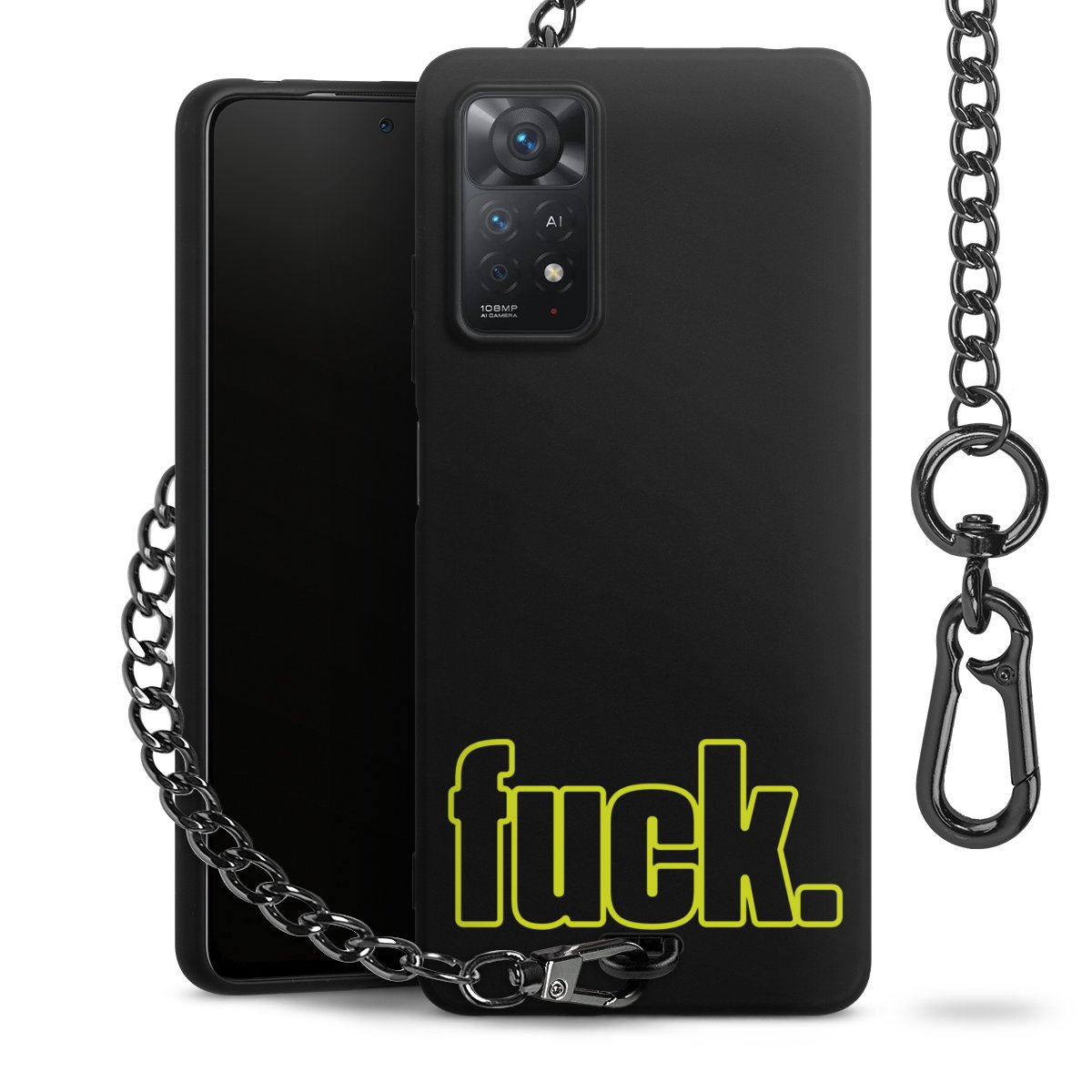 Die mattschwarze Silikon-Handyhülle besteht aus robustem TPU (thermoplastisches Polyurethan). Sie ist flexibel und schützt Dein Smartphone vor Stößen und Kratzern. Die Kette sowie der Karabinerhaken sind aus Metall in Gunmetal-Optik gefertigt. Für dieses Produkt kommen ausschließlich TÜV-geprüfte Materialien zum Einsatz.