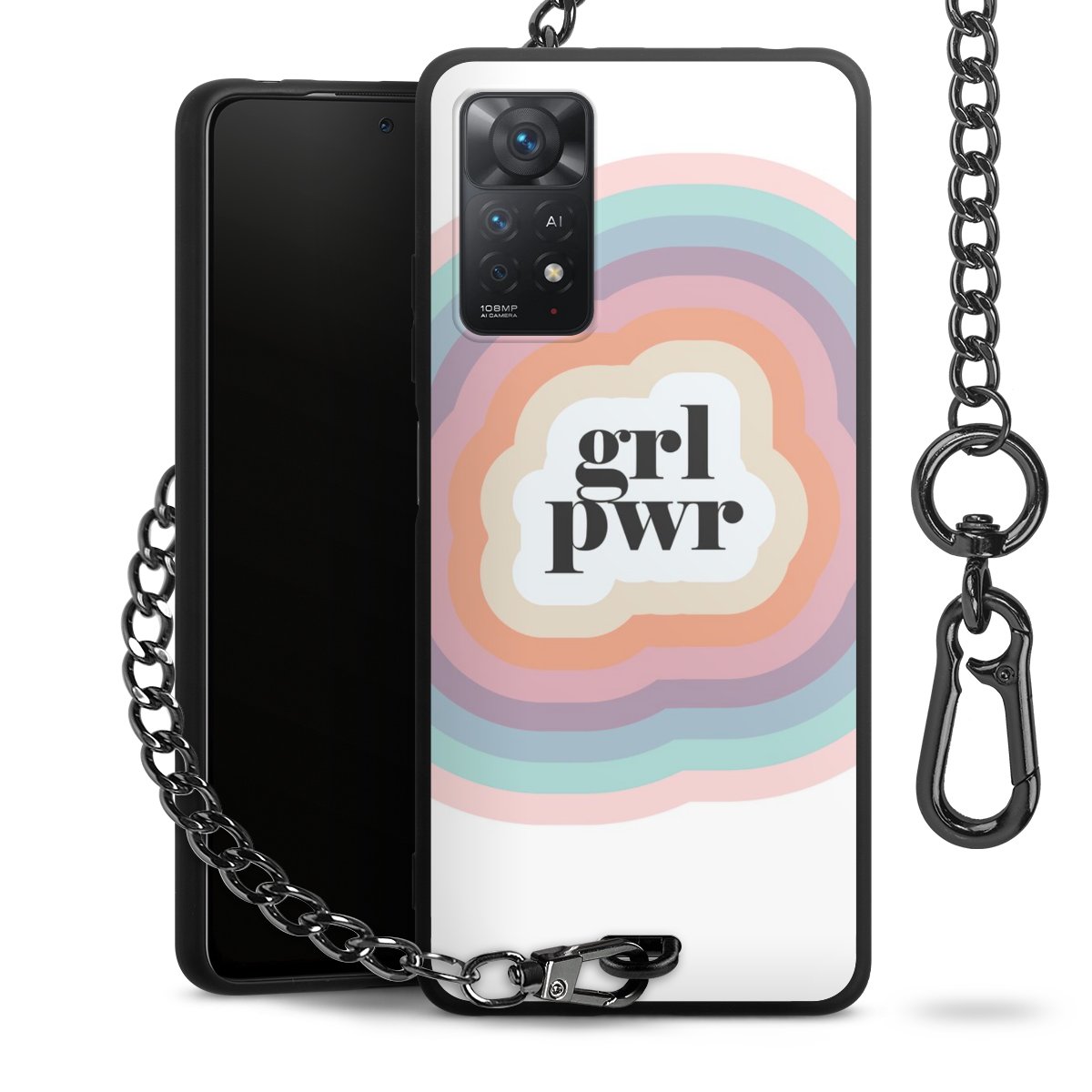 • Mattschwarze Handyhülle mit Metallkette