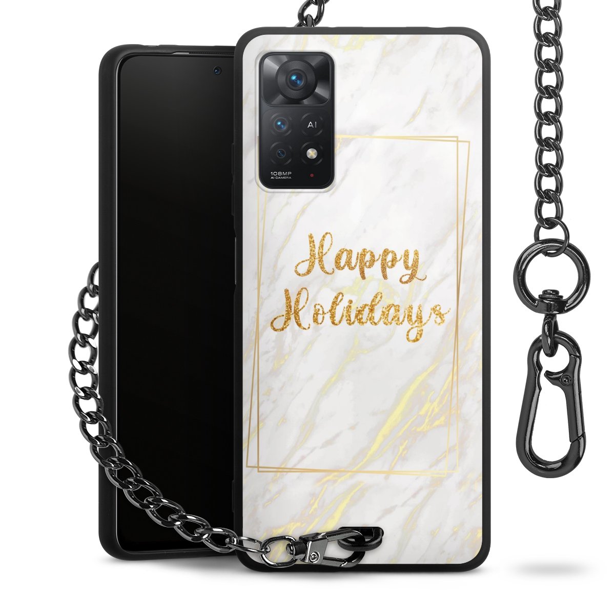 - Mattschwarze Handyhülle mit Metallkette